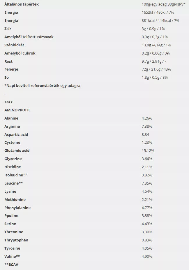 - Vysoký obsah bílkovin: jedna porce (30 g) proteinového prášku obsahuje nejméně 21-22 g rostlinných bílkovin