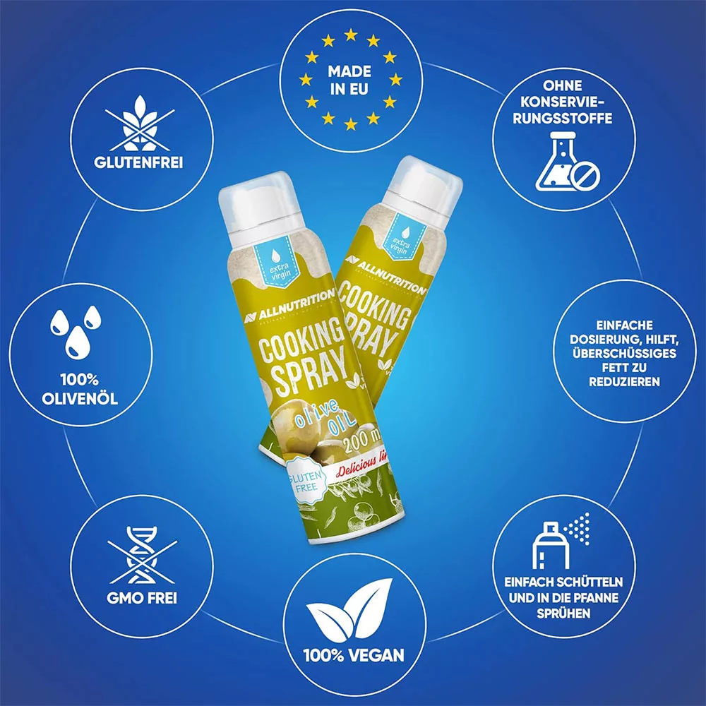 ALLNUTRITION COOKING SPRAY OLIVE OIL je určen pro ty, kteří dbají na zdravý životní styl a chutná domácí jídla. Jeho jedinou složkou je olivový olej, který je známý svou charakteristickou chutí a příznivými účinky na zdraví. Je bohatý na esenciální nenasycené mastné kyseliny a obsahuje cenné látky, jako jsou polyfenoly, vitamín E a K.