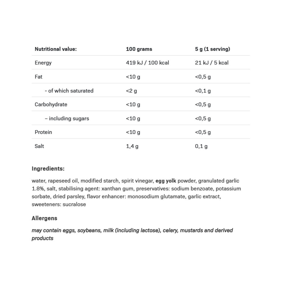 • Lahodná nízkokalorická omáčka s klasickou česnekovou příchutí