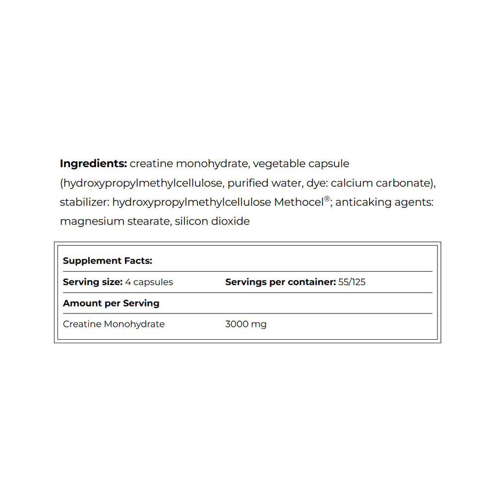 Užívejte 3 kapsle denně přibližně 30-60 minut před fyzickým výkonem. Opláchněte je velkým množstvím vody. Sportovci užívající kreatin monohydrát by měli denně vypít alespoň 2000 ml vody, aby se maximalizovala hydratace.