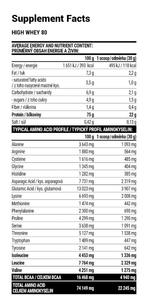 Velkou předností tohoto výrobku je obsah všech bílkovinných frakcí - viz složení. Do výrobku bylo přidáno sedm komplexů trávicích enzymů pro co nejlepší stravitelnost a využití bílkovin ve svalech. Byly použity tyto enzymy: papain, alfa-amyláza, bromelain, laktáza, celuláza, neutrální proteáza, lipáza. Jako hlavní sladidlo bylo použito sladidlo z 97 % z rostliny stévie! CFM Instant Whey 80 se dodává ve 13 skvělých příchutích. Ovocné příchutě obsahují lyofilizované ovoce (což znamená, že neobsahují žádné chemické látky) a v příchuti je můžete cítit! Nyní si troufáme tvrdit, že náš protein CFM Instant Whey 80 chutná ze všech nejlépe! Chuť je bohatá, výrazná a krémová. Obsah bílkovin činí 75 %. Tento výrobek je oblíbený (kromě výše zmíněného vynikajícího složení) pro svou snadnou přípravu - dokonale instantní, bez prášku a hrudek.