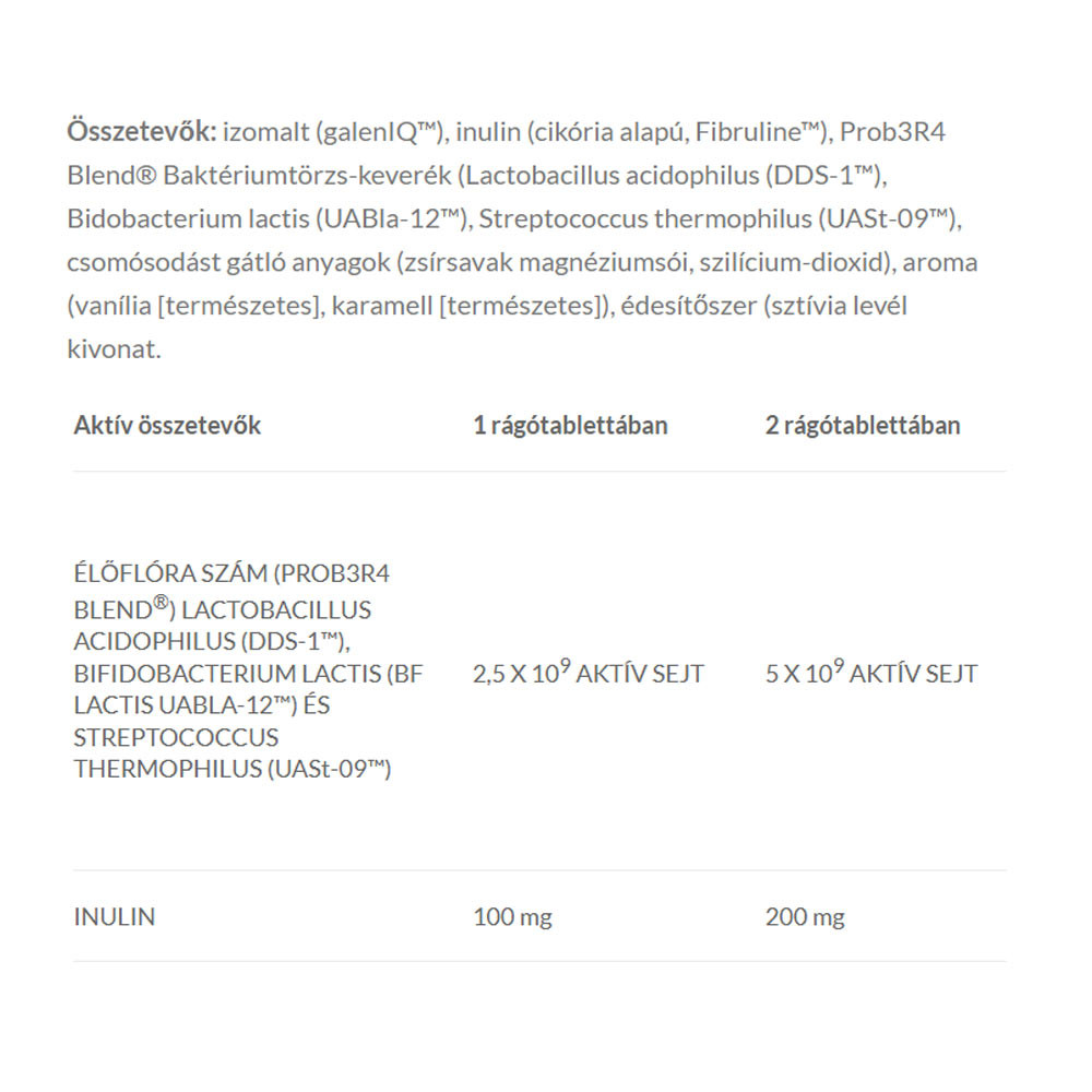 JutaVit Probium Kid pro děti + inulin je doplněk stravy obsahující Lactobacillus acidophilus (DDS-1™), Bidobacterium lactis (Bf lactis UABla-12™), Streptococcus thermophilus (UASt-09™) a inulin s příjemnou přírodní vanilkovou a karamelovou vůní a sladidlem.