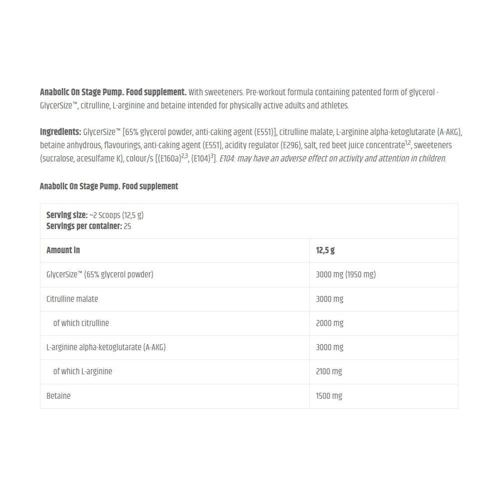Anabolic On Stage Pump. Doplněk stravy. Se sladidly.