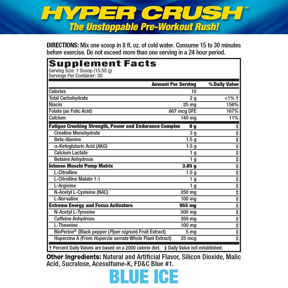 HYPER CRUSH vás zasáhne přívalem energie, laserovým soustředěním a přívalem síly, po kterém následuje masivní svalová pumpa.