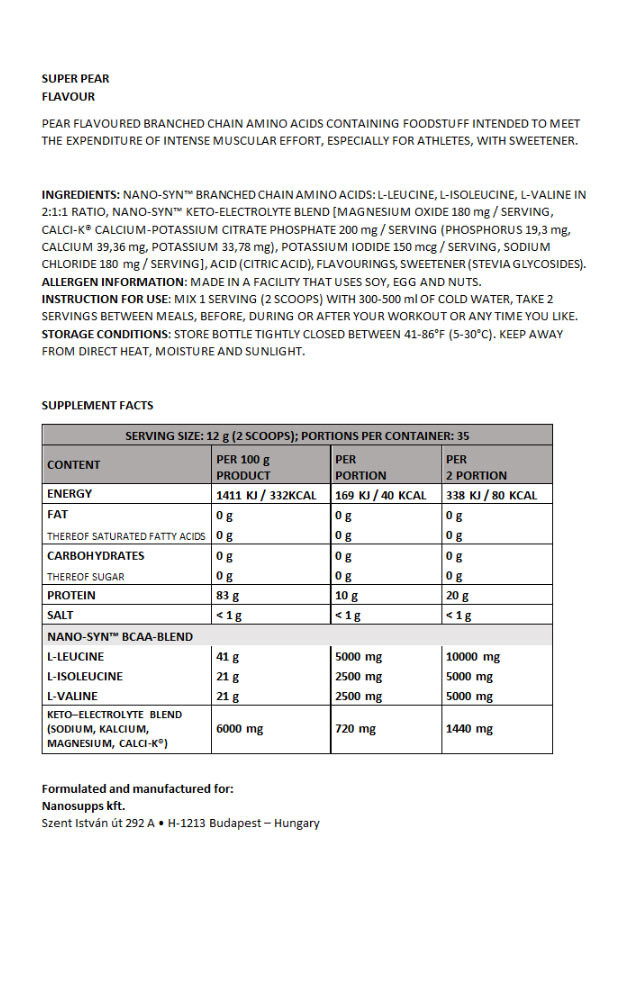 Nanosupps Amino Acid BCAA Nano (420 g, Super Pear)