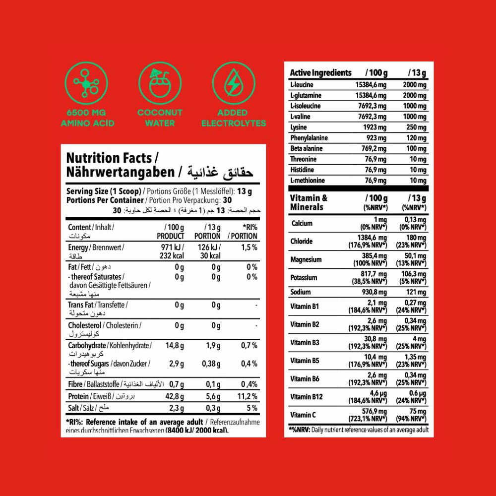 · Obsahuje esenciální aminokyseliny elektrolyty a minerály