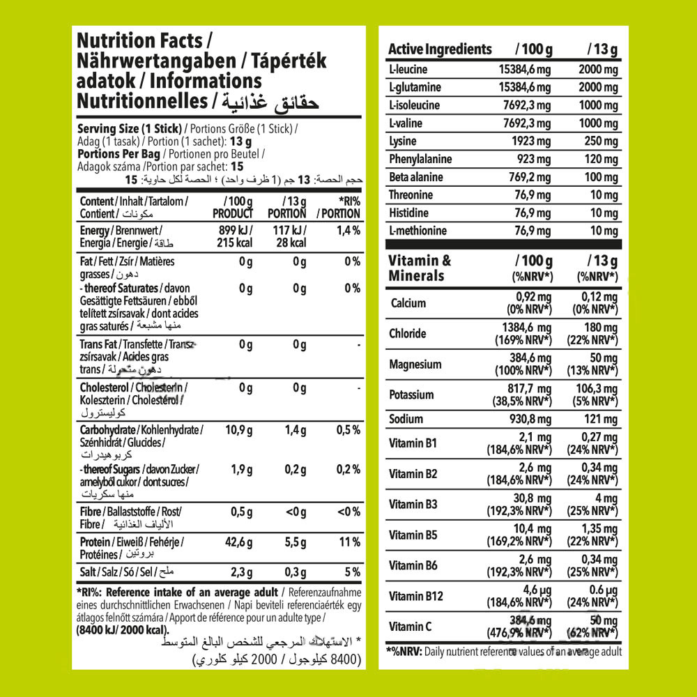 Naše jedinečná směs EAA Pro Amino obsahuje klíčové aminokyseliny jako L-leucin, L-glutamin, L-isoleucin a L-valin, které společně podporují