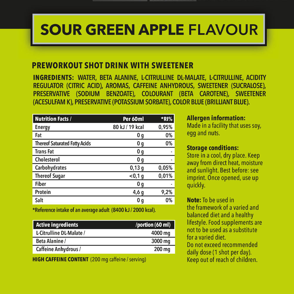Každý shot je nabitý silnými ingrediencemi, které poskytnou energii vašemu tréninku a pomohou vám dosáhnout vašich fitness cílů.