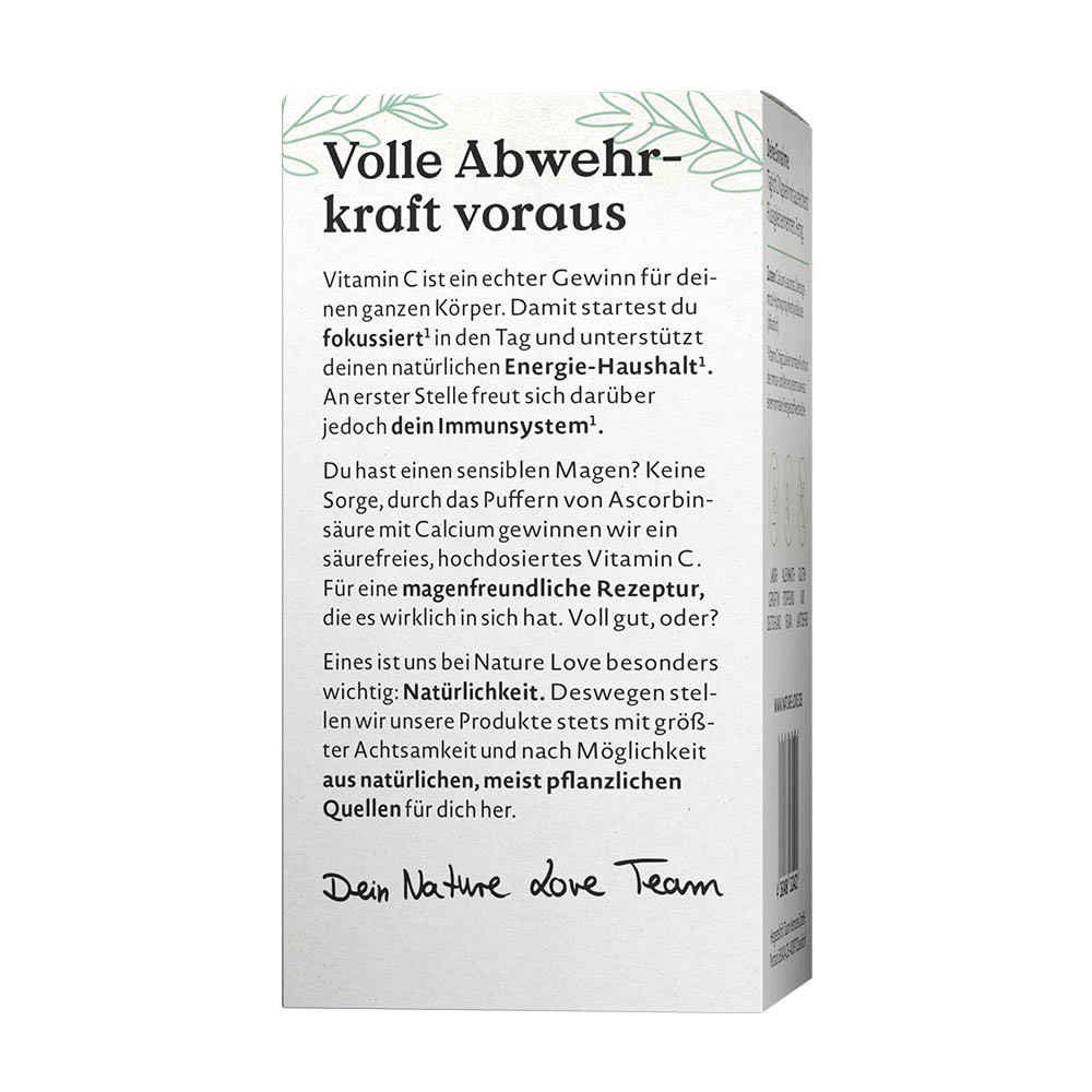 Non-GMOVitamin C je opravdovým vítězstvím pro celé vaše tělo. Pomáhá vám začít den s koncentrací a podporuje vaši přirozenou energetickou rovnováhu. Ale nejvíce z toho těží váš imunitní systém. Máte citlivý žaludek? Nebojte se — pufrováním kyseliny askorbové vápníkem vytváříme bezkyselinový, vysoce dávkovaný vitamin C. Skutečně šetrné složení pro žaludek, které opravdu funguje. Docela skvělé, že?