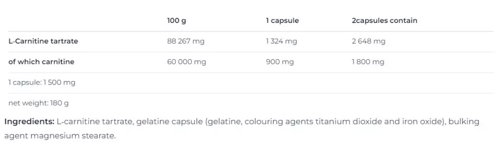 Čistá krystalická forma karnitin tartrátu ve vysoce vstřebatelných kapslích, které zjednodušují přesné dávkování.