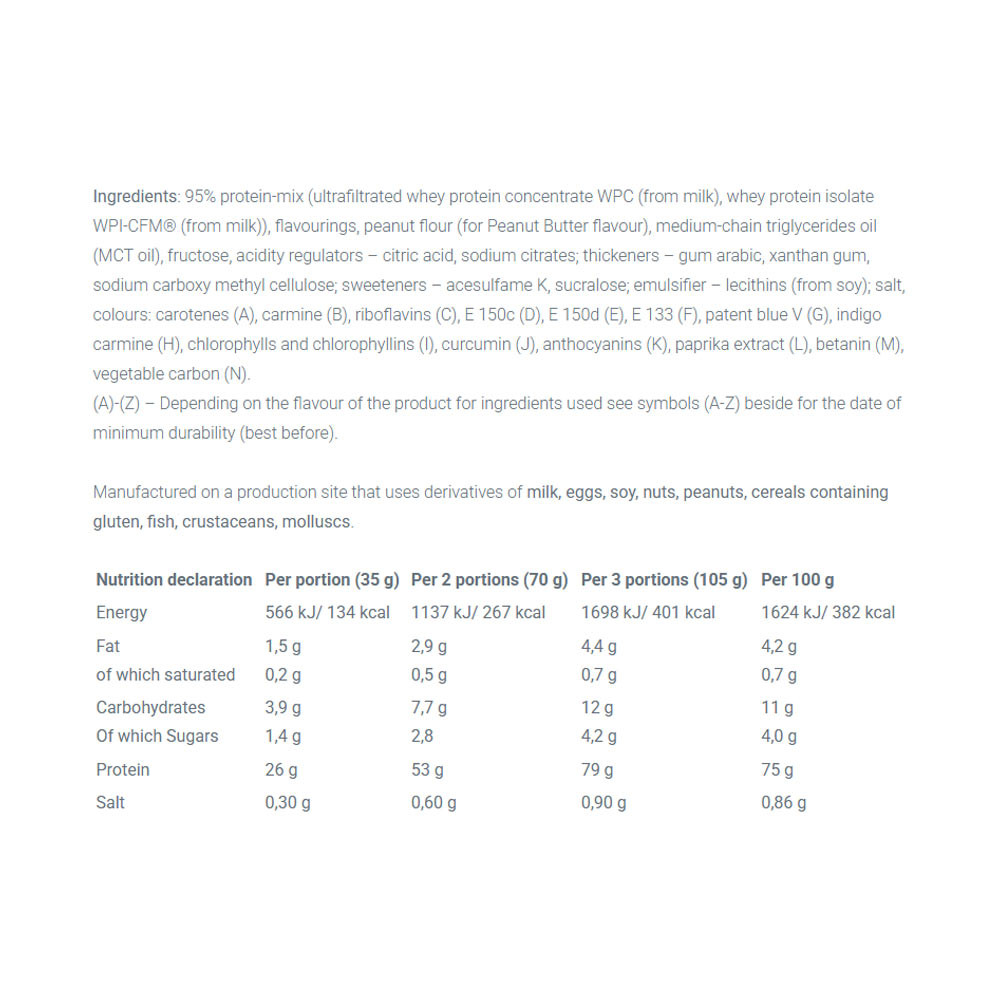 WHEY PROTEIN COMPLEX 100% – doplněk stravy. Se cukrem a sladidly. Ochucený produkt. Vysoce koncentrovaný proteinový prášek. Směs vysoce kvalitního ultrafiltrovaného syrovátkového proteinového koncentrátu a syrovátkového proteinového izolátu. Produkt je určen pro fyzicky aktivní osoby a sportovce, kteří usilují o rozvoj svalové hmoty. Protein přispívá k růstu a udržení svalové hmoty.