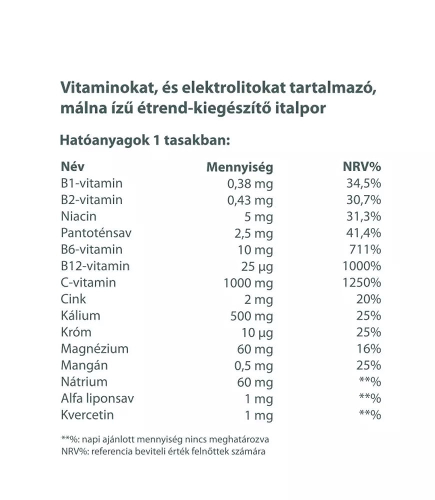 Multivitamínový nápoj v prášku s příjemnou malinovou chutí s 1000 mg vitaminu C, vitaminy skupiny B a významným množstvím cenných minerálů.