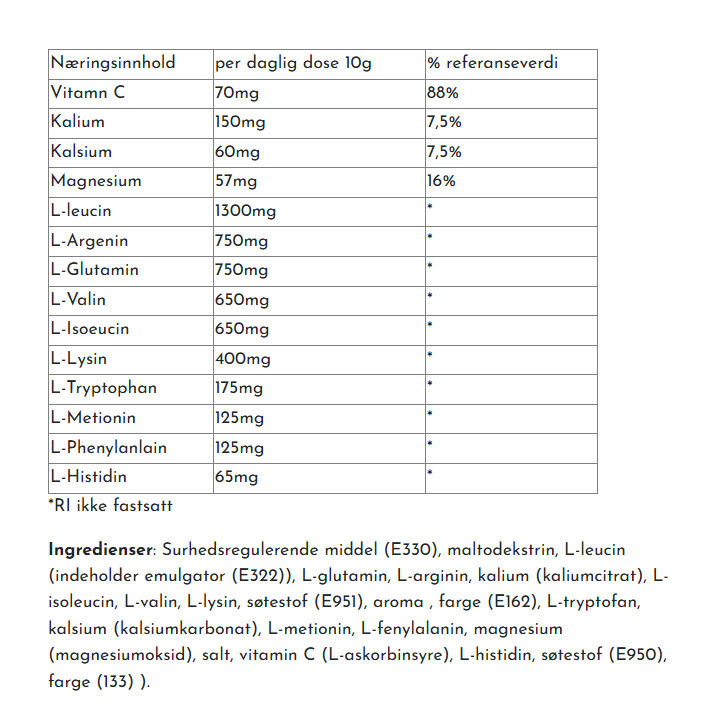 Jedinečná směs deseti esenciálních aminokyselin, které jsou zásadní pro obnovu svalů a mají zásadní význam pro nárůst svalové hmoty!